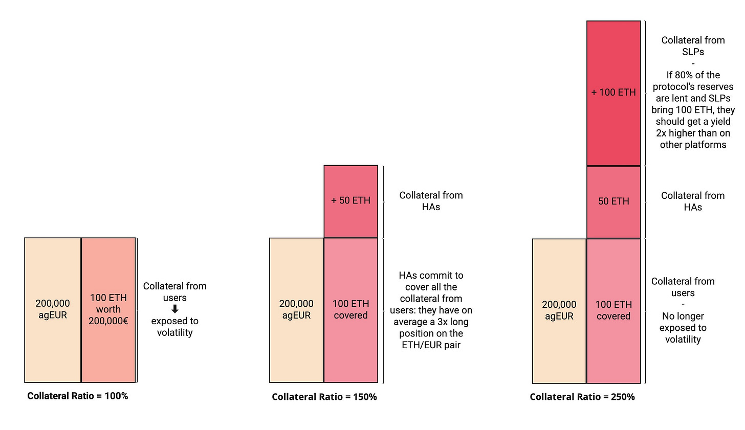 Standard Liquidity Providers: These users provide collateralisation when the protocol is closer to being under-collateralised and hedging agents do not bring in enough collateral to back the stablecoin. In some sense, the liquidity provided by SLPs acts as backstop protection to re-collateralise the system in dire conditions.