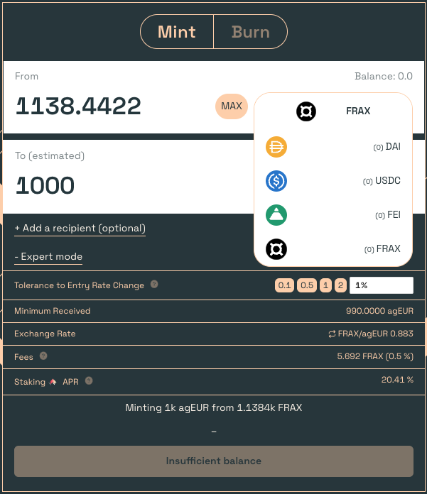 agEUR (Angle Euro) applies ANGLE Protocol’s methodology of minting and maintaining stablecoins.