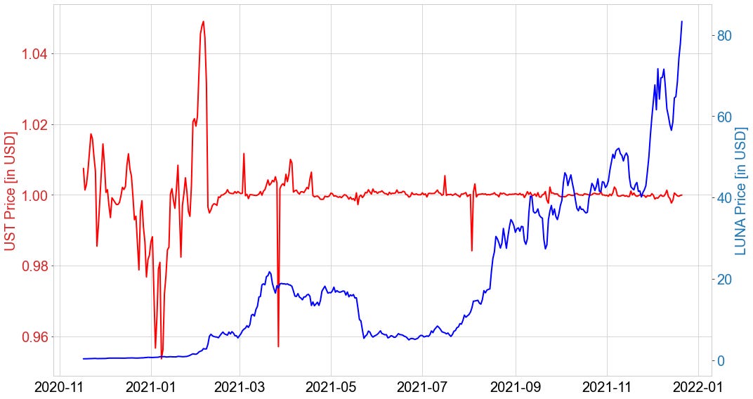 The algorithmic nature of UST’s peg to USD adds significant risk to the asset. However, it is important to note that effectively the entire Terra ecosystem and its users are incentivised to mitigate risk associated with UST. The UST/USD peg is so important, it is practically written into the core of the protocol.