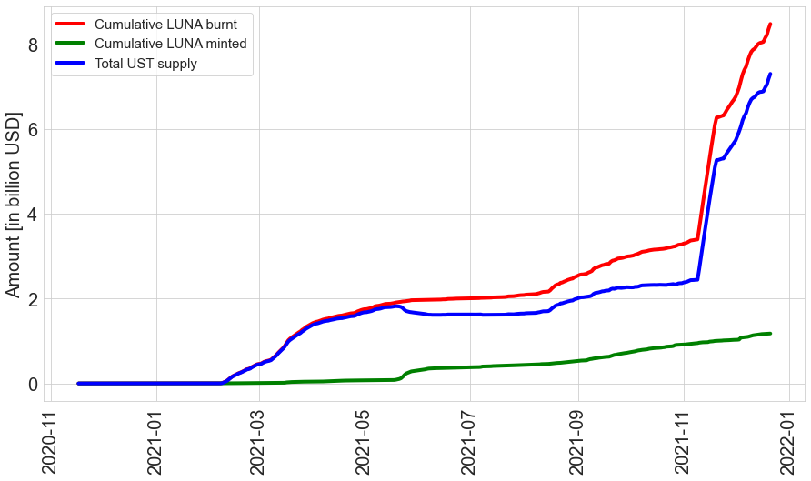 Historically, UST has seen severe price volatility against USD, with intervention requiring from the community protocols (Anchor with its improvement proposals on handling liquidations better, JumpTraders recommending higher redemption caps on minting and burning UST/LUNA, Chainlink integration) which have thus far had a positive impact on UST/USD stability. Of late, major drops in LUNA price has seen a more resilient UST stablecoin.